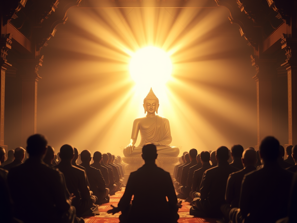 Si l’on ne comprend pas la réalisation du Bouddha en tant que Maître véritable, alors le virus de l’ignorance se transmet d’une personne à l’autre par les six portes sensorielles : les yeux, les oreilles, le nez, la langue, le corps et l’esprit.Si une autre personne est aveugle (dans la sagesse), nous risquons de devenir aveugles à notre tour sans même nous en rendre compte.L’explication ci-dessus n’est que ma propre réflexion ; le reste provient directement des enseignements du Bouddha.